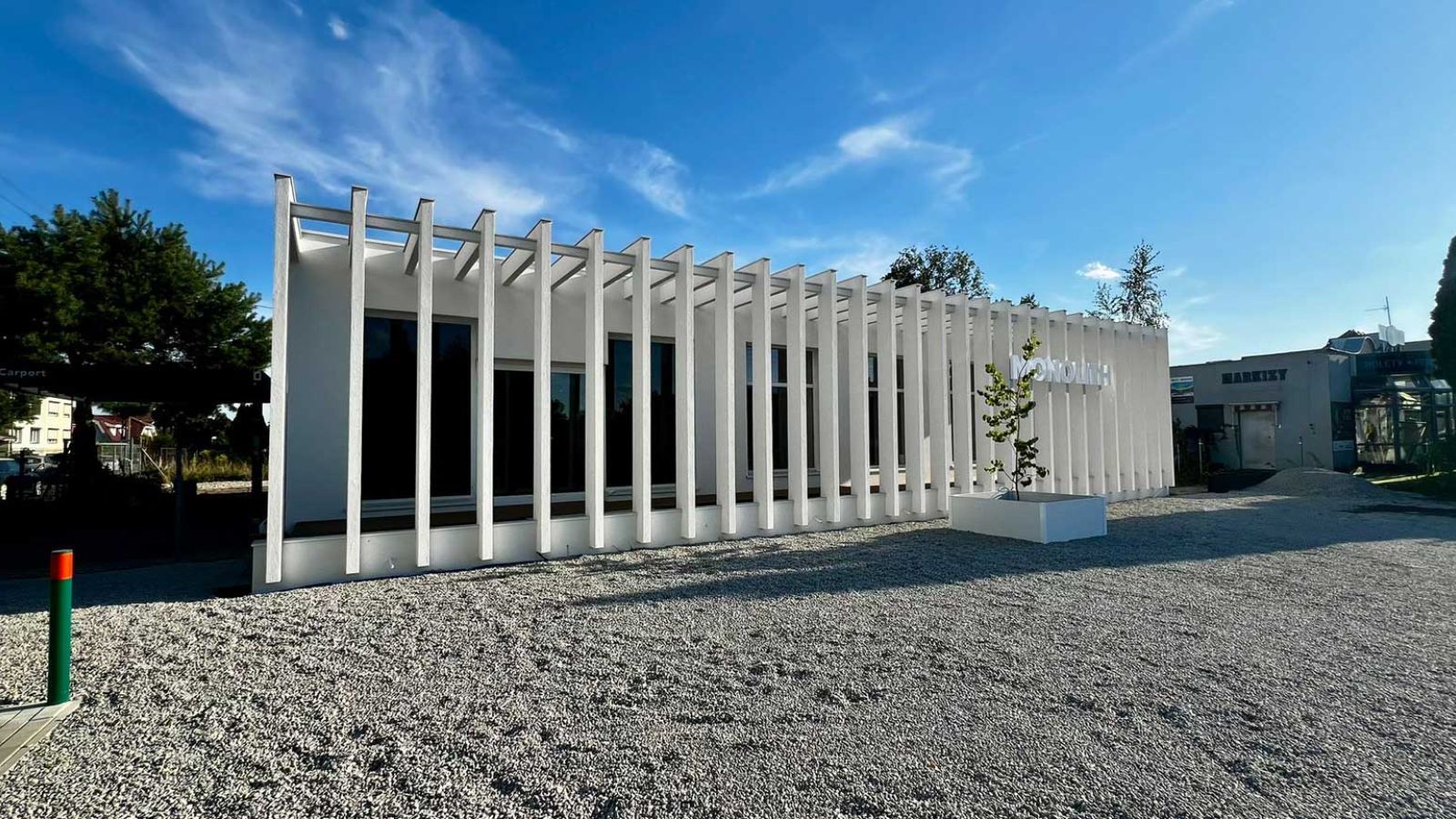 Nowoczesna architektura – minimalistyczna bryła z charakterystyczną fasadą idealnie odzwierciedla filozofię Monolith, w której design spotyka się z funkcjonalnością.