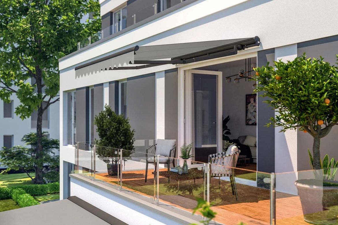 Najbardziej zaawansowany wariant, zapewniający pełną ochronę poszycia oraz ramion wysięgu przed deszczem, pyłem i innymi czynnikami atmosferycznymi. To rozwiązanie polecane do montażu na elewacjach bez dodatkowego zadaszenia.