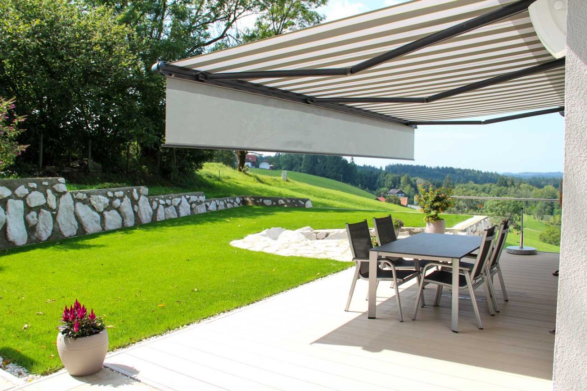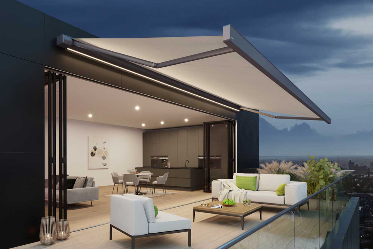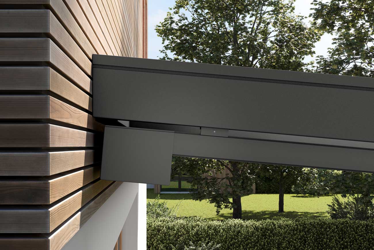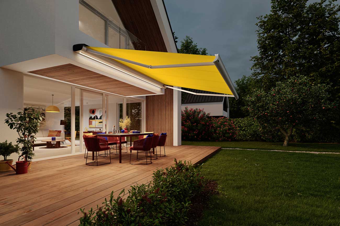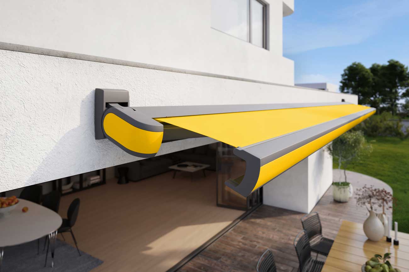 Kompaktowa kaseta o głębokości 23 cm i wysokości 12 cm skutecznie chroni mechanizm i tkaninę markizy. Dostępne są różne opcje montażu (ścienne, sufitowe, krokwiowe) z regulacją kąta nachylenia. Dostępne oświetlenie LED Line lub regulowane reflektory LED SPOT, tworzą przytulną atmosferę wieczorami.
