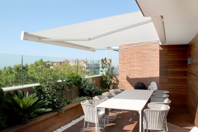 Markilux MX4 – nowoczesna i wytrzymała markiza pełnokasetowa, idealna do dużych tarasów i ogrodów. Dzięki solidnej konstrukcji i innowacyjnej technologii zapewnia skuteczną ochronę przeciwsłoneczną na szerokości do 700 cm, a w wersji modułowej nawet do 1400 cm.