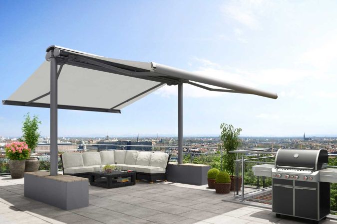Konstrukcja dostępna w standardowych kolorach, z możliwością wyboru dowolnego RAL. Opcje dodatkowe to schattenplus, LED, promiennik ciepła i automatyka pogodowa.