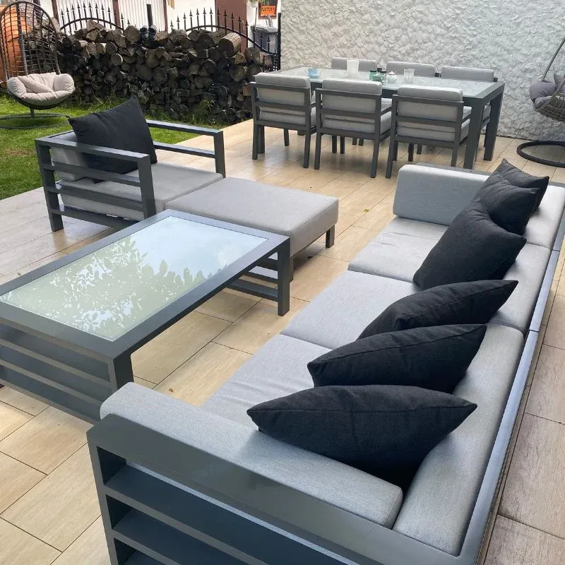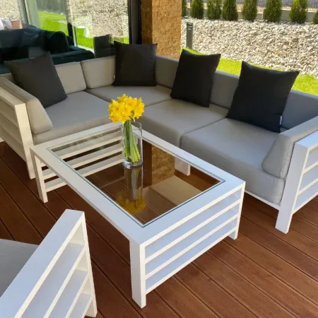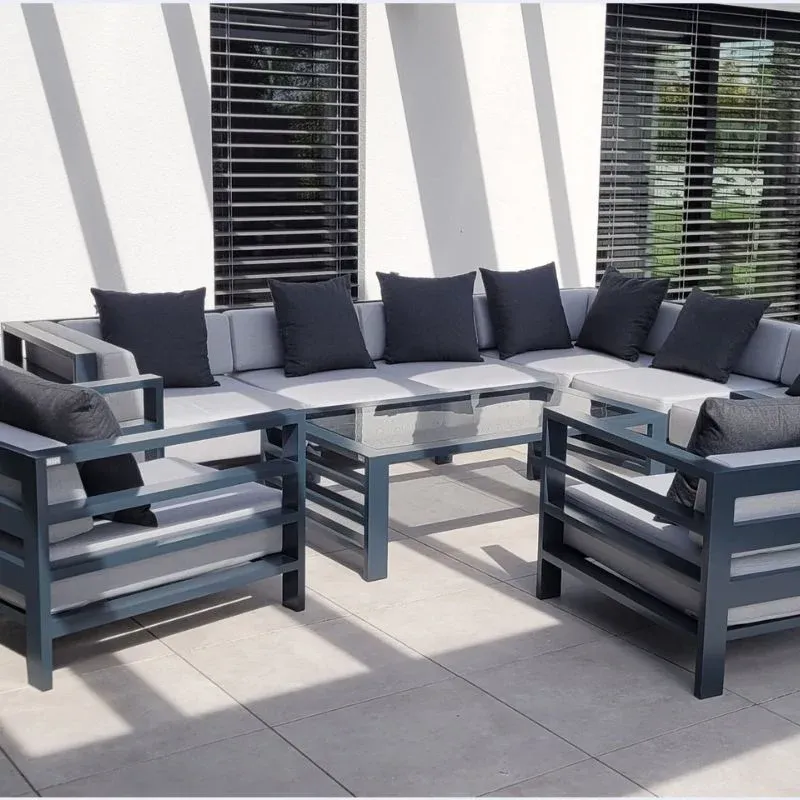 ARUCAS to połączenie solidności i wyrafinowania. Mocne linie konstrukcji kontrastują z miękkimi, mięsistymi tkaninami i dekoracyjnymi poduszkami, co tworzy efektowną, harmonijną całość. Doskonale sprawdzi się w przestrzeniach przeszklonych, na dużych tarasach czy w ogrodach. Imponująca grubość poduszek i starannie dobrane tkaniny gwarantują wyjątkową wygodę użytkowania.