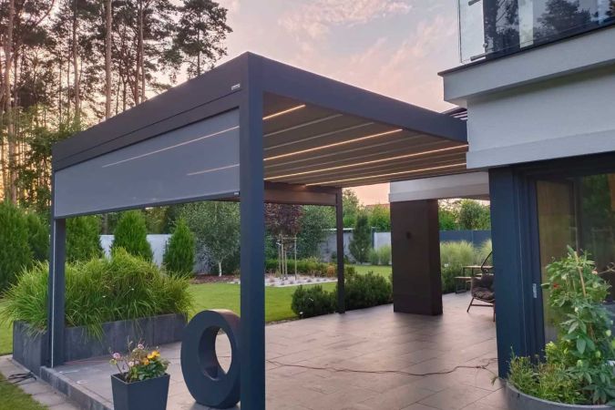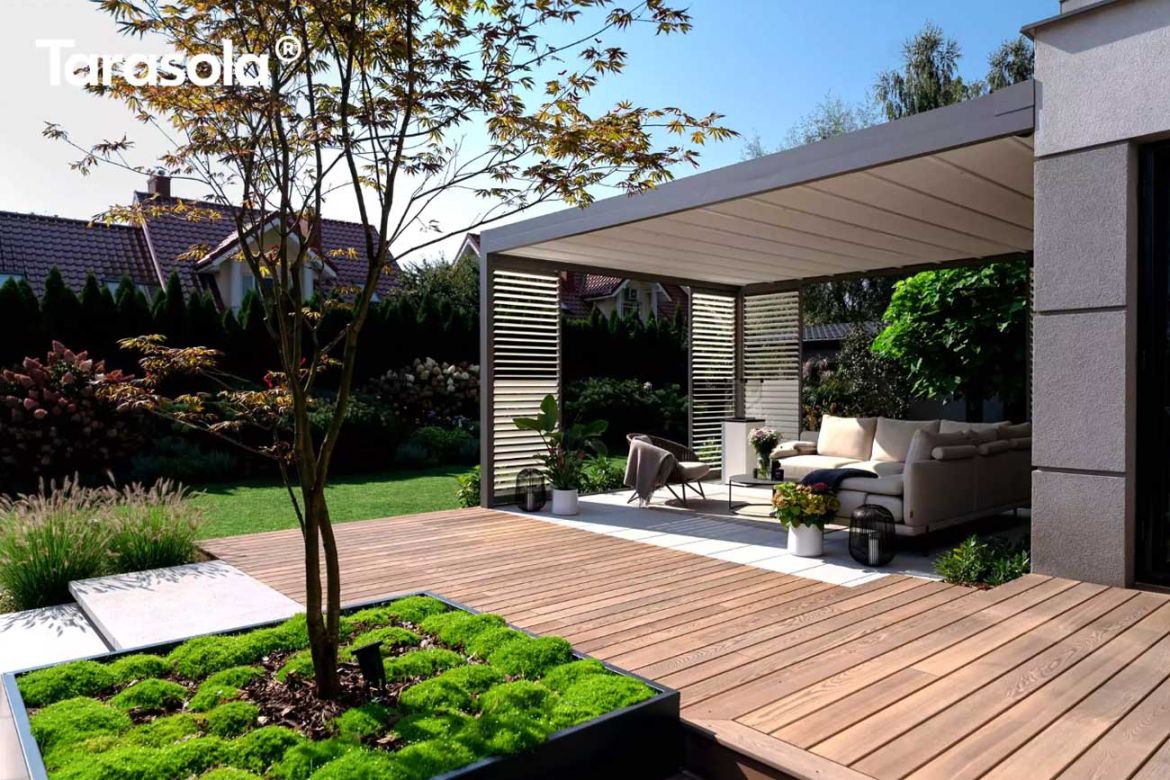 Pergola Tarasola Cubic oferuje pełną automatykę, umożliwiającą wygodne sterowanie dodatkowymi funkcjami, takimi jak promienniki ciepła, oświetlenie LED i rolety zaciemniające. Zadaszenie szczególnie dedykowane dużym i średnim tarasom, doskonale sprawdzi się w branży HoReCa. Idealne rozwiązanie dla wymagających użytkowników!