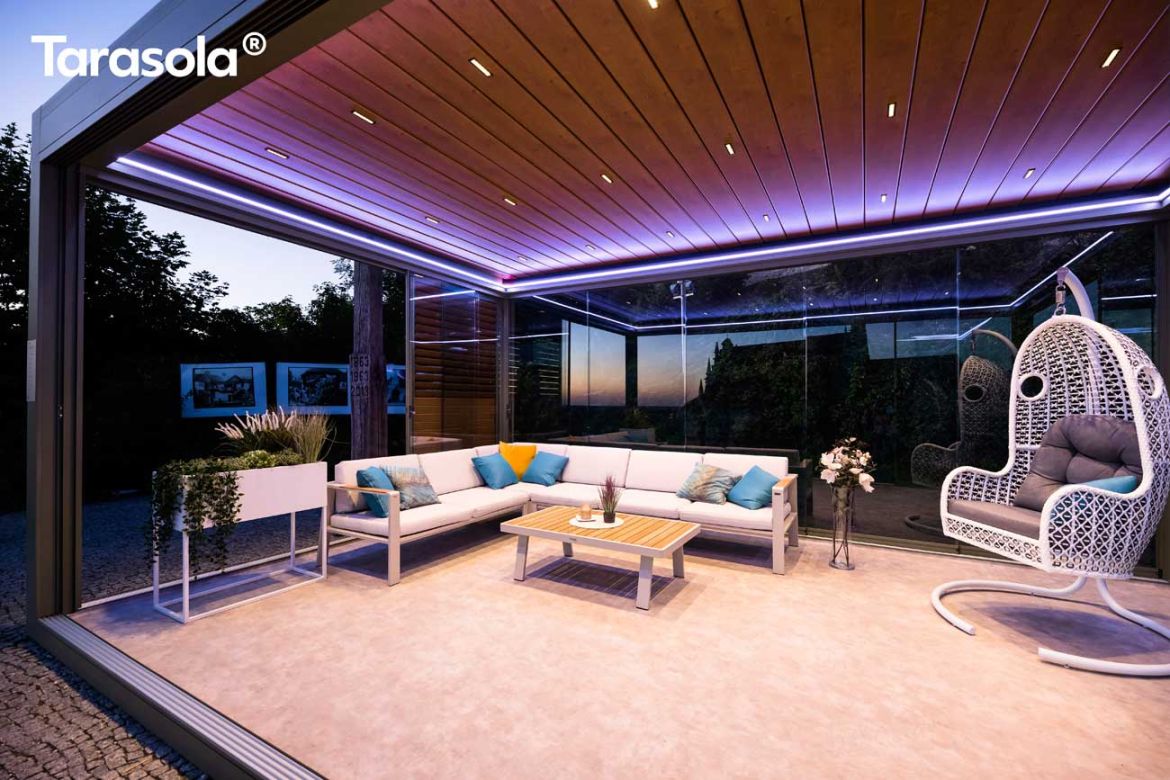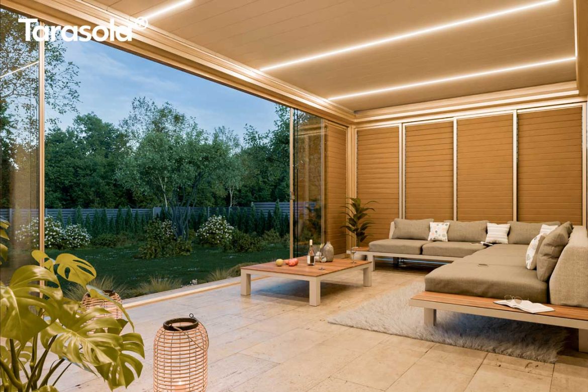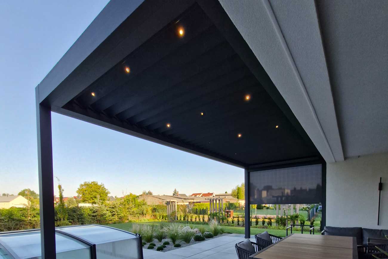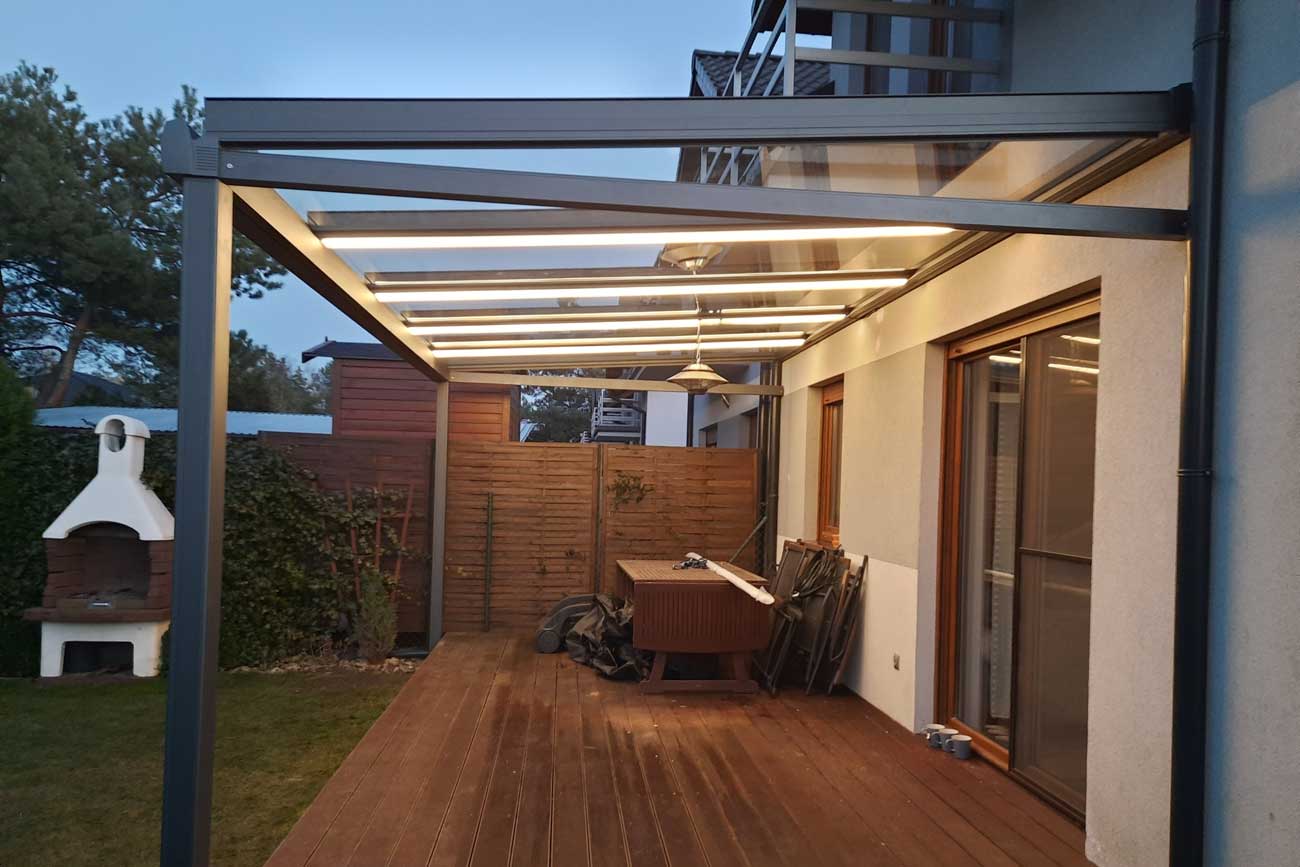 Dostępne w naszej ofercie oświetlenie LED jest wyjątkowo praktyczne i energooszczędne. Dzięki odporności na warunki atmosferyczne doskonale sprawdzają się w każdej pogodzie, a ich nowoczesny design idealnie wpasowuje się w estetykę każdego tarasu, ogrodu czy balkonu. Zintegrowane oświetlenie tarasu oferuje nieograniczone możliwości aranżacyjne, a jego instalacja jest dyskretnie wkomponowana w konstrukcję zadaszenia.