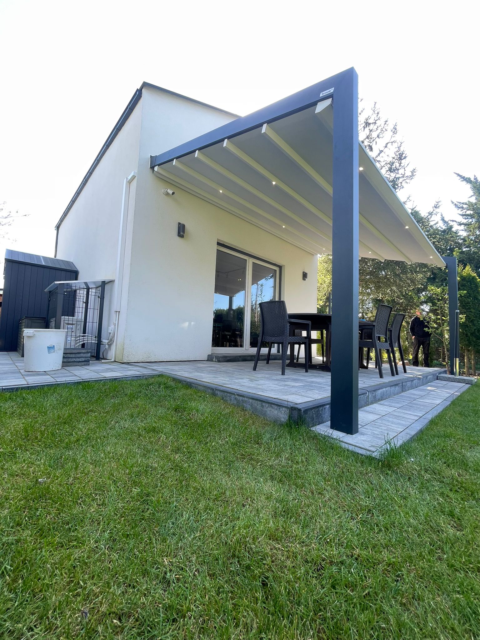 Ta pergola zapewnia skuteczną ochronę przed słońcem i deszczem. Woda odprowadzana jest do czoła konstrukcji, dzięki czemu samoczynnie spływa do dołu po całej szerokości pergoli (nie posiada rynny). Automatyczne sterowanie za pomocą pilota lub aplikacji mobilnej zwiększa komfort użytkowania. Model Light występuje tylko w wersji przyściennej, idealnej do małych i średnich tarasów.