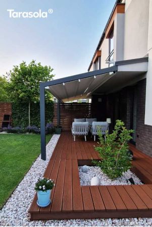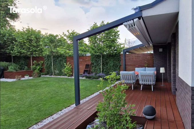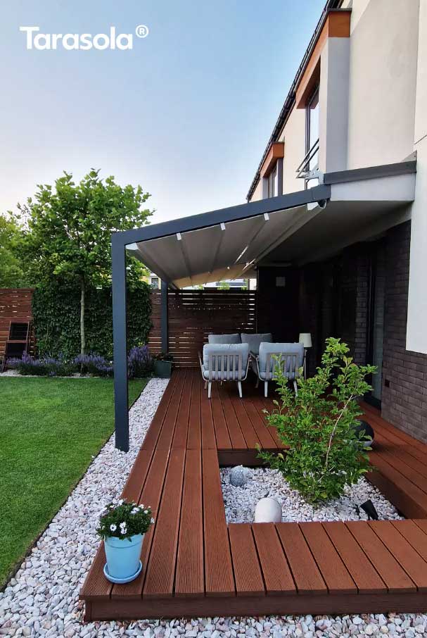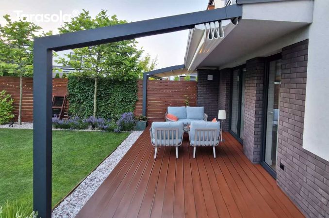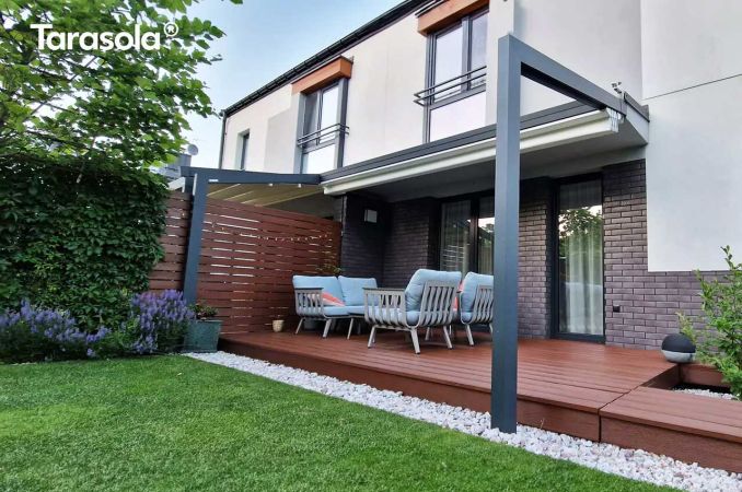 Pergola Tarasola Light to doskonały wybór dla miłośników nowoczesnego designu i minimalizmu. Charakteryzuje się ograniczoną liczbą profili, co nadaje konstrukcji lekkości i elegancji. Unikalne połączenie nogi z prowadnicą pod kątem dodaje jej wyjątkowego, designerskiego charakteru.